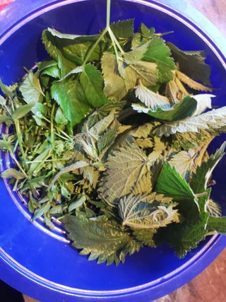 This sparked my enthusiasm for herbs! I collected and processed as much as I could. Going for a walk was only possible with scissors and a fruit net ...